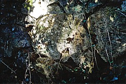 Was und wer zeigte sich nicht alles in den amorphen Strukturen von Blättern, auf Rinden, auf Steinen und Felsen, im Feuer oder im Wasser: Amöbische Vielfüßler, Monster, schreiende offene Münder, Fabelwesen, Totenschädel, Zwerge, Salamander, Tintenfische und geheimnisvolle Schriftzeichen, die entziffert werden wollten. Ich wurde(um nur mal einige zu nennen) gut Freund mit Frau Blattmuhme, den Herren Rautenmaul, Hohlauge, Vulkano, Schiefmaul, Spitznase, Ohrator und Mr. Sauertopf. Sogar Kuhfladen boten sich frecher weise dem Auge als belebt an.